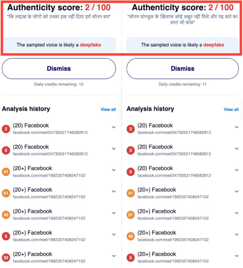 Suspecting the video to be AI-generated, we analysed it using the Hiya voice detection tool, which flagged the audio in the viral video as a deepfake.