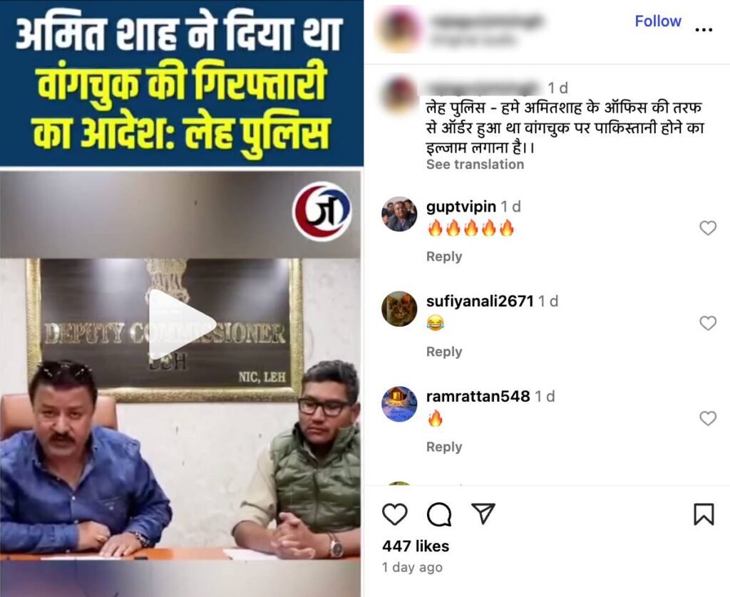 To sum up, this video of Leh ADC Ghulam Muhammad stating that Amit Shah’s office ordered Sonam Wangchuk’s arrest and asked them to label him a Pakistani agent is fake.