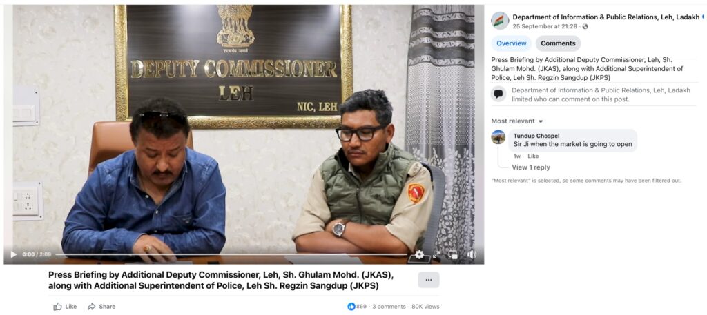 A reverse image search of keyframes from the viral video led us to a Facebook post dated 25 September 2025, showing a press briefing by ADC Leh, Ghulam Muhammad, and ASP Leh, Regzin Sangdup. The background, clothing, and setting in the official video match those seen in the viral clip. In the briefing, Ghulam Muhammad provided details about injuries sustained during the 24 September 2025 Leh protest and appealed to local authorities and the public to maintain peace. Nowhere in the video did the ADC Leh state that Sonam Wangchuk was arrested on instructions from the Union Home Ministry, nor did he mention labelling Wangchuk a Pakistani agent. The original video simply shows the ADC updating the public on the aftermath of the violent clashes, which left four dead and 90 injured, and urging law and order.
