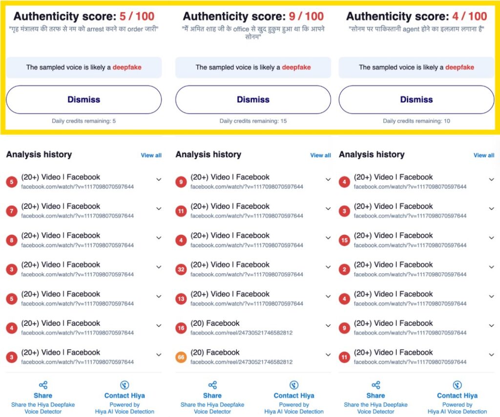 Suspecting the video to be AI-manipulated, we analysed it using the Hiya voice detection tool, which flagged the audio in the viral video as a deepfake.