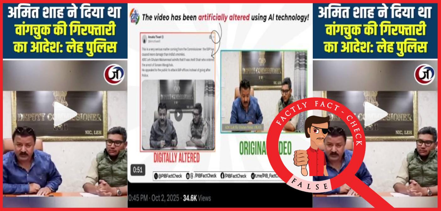 Claim: The video shows the ADC of Leh, Ghulam Muhammad, admitting that Amit Shah’s office issued orders to arrest Sonam Wangchuk and label him a Pakistani agent.