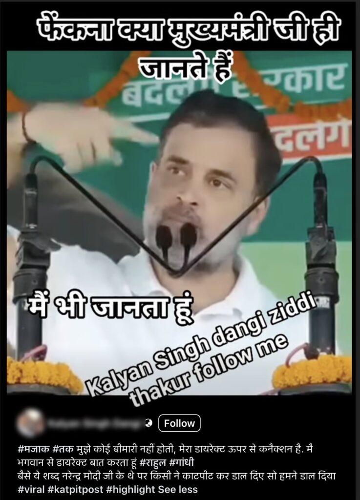 The Bihar Assembly Elections 2025 are scheduled to be held in two phases on 6 November and 11 November 2025. As the election campaign intensifies (here and here), a video (here, here, here, here and here) of Congress leader Rahul Gandhi has gone viral. In the clip, he is heard saying, “I don’t get any illness, I have a direct connection with God, and I talk directly to God.” The video is being shared with the claim that he made these remarks about himself. Let’s find out the truth behind this claim.
