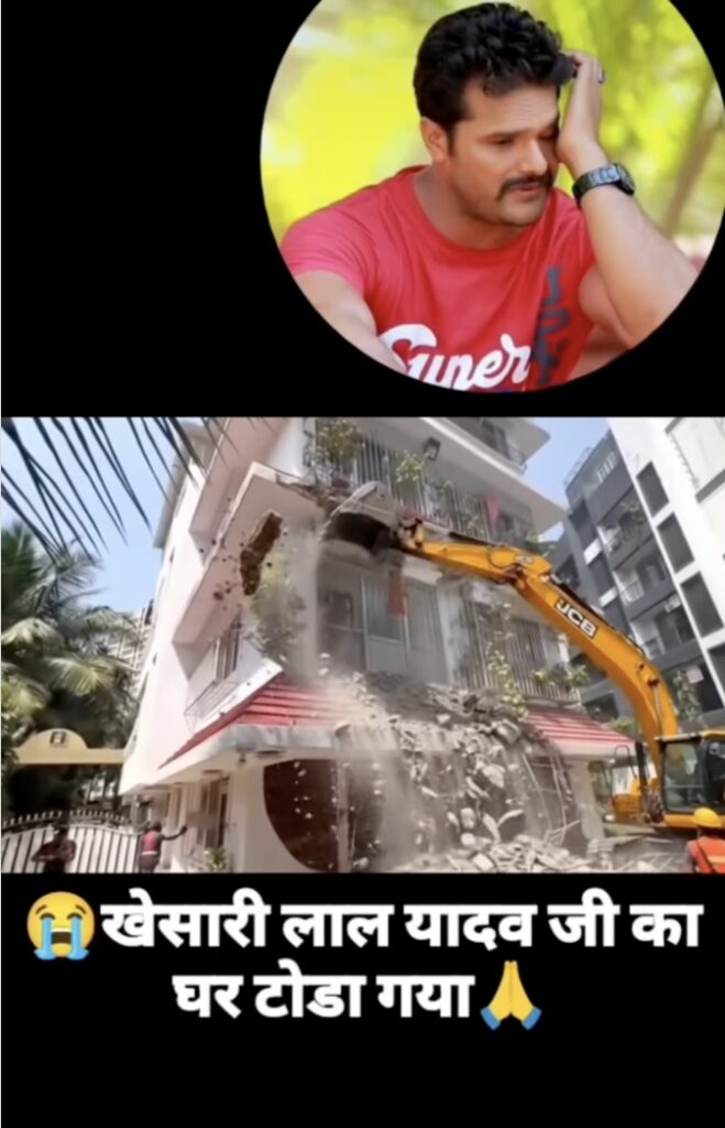 Claim: The video shows Bhojpuri actor and RJD candidate Khesari Lal Yadav’s house being demolished by authorities after a notice was served by the Mira Bhayandar Municipal Corporation.