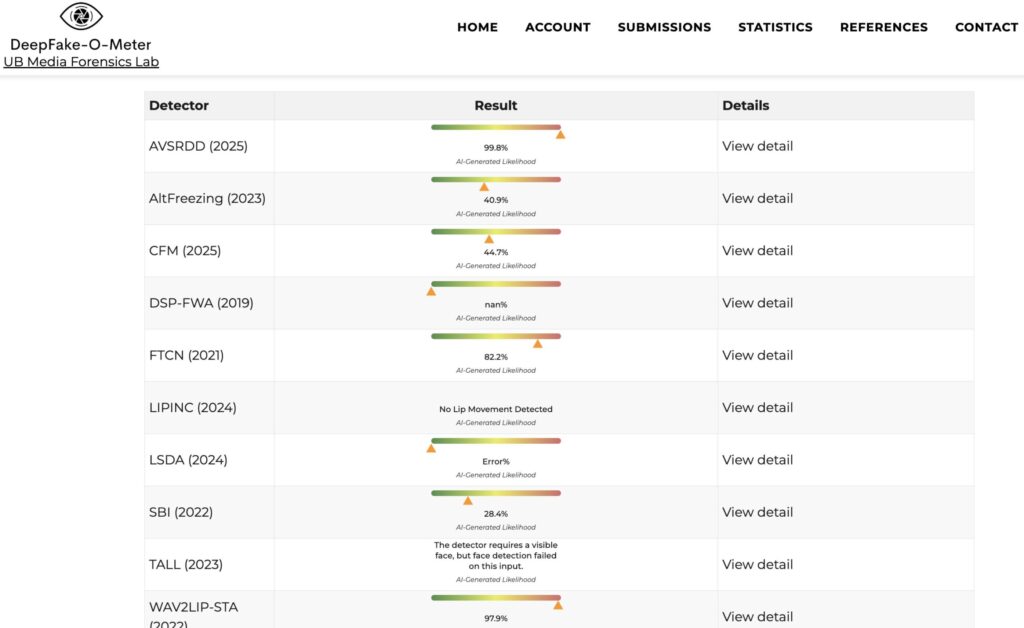 To verify whether the video is AI-generated, we analysed it using the AI detection tool Deepfake-o-meter, which flagged the video as AI-generated.