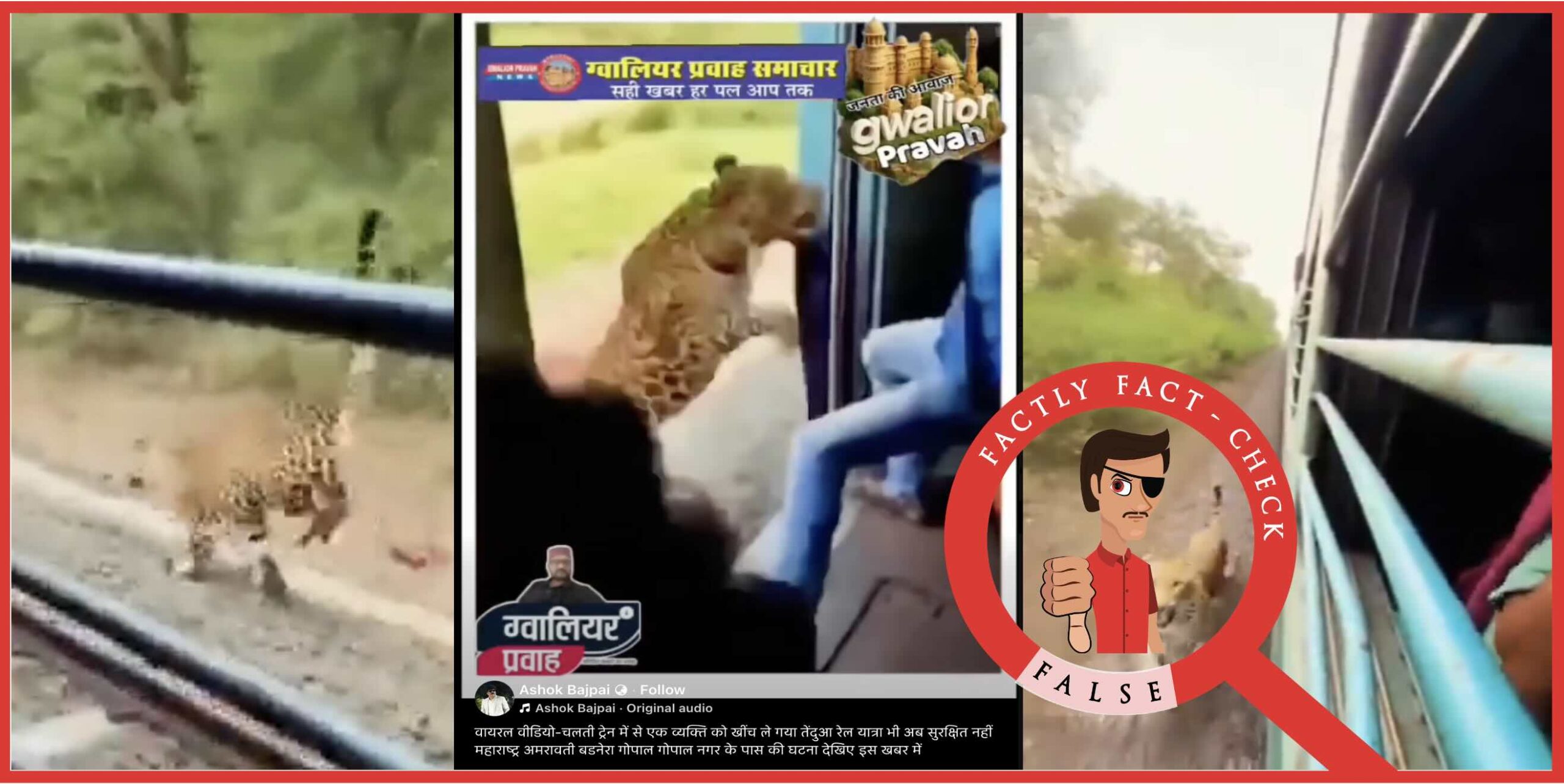 A video (here, here and here) showing a leopard attacking people on a moving train, grabbing a person, and causing panic among passengers is circulating on social media with the claim that it occurred in Gopal Nagar, Amravati district, Maharashtra. Let’s verify the truth behind this video.