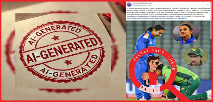 Fact: The viral image showing Pakistan cricket team captain Fatima Sana touching the feet of Indian opener Smriti Mandhana is AI-generated. No credible reports confirm such an incident, and the full match commentary on Cricbuzz makes no mention of it. Analysis using AI image detection tools such as Sightengine, DeCopy AI, and SynthID confirmed the image was AI-generated. Hence, the claim made in the post is FALSE.