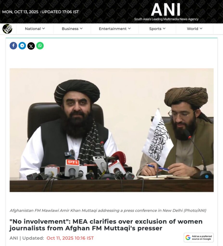 In the entire controversy, the Indian Ministry of External Affairs clarified that the Indian government had no role in the press conference held at the Afghan Embassy on 10 October 2025.