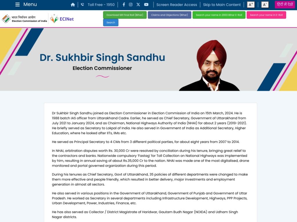 We noticed that the screenshot mentioned the Election Commissioner’s name as Sukhbir Singh Sidhu. However, on the official Election Commission website, the Election Commissioner’s name is listed as Sukhbir Singh Sandhu, not Sidhu.