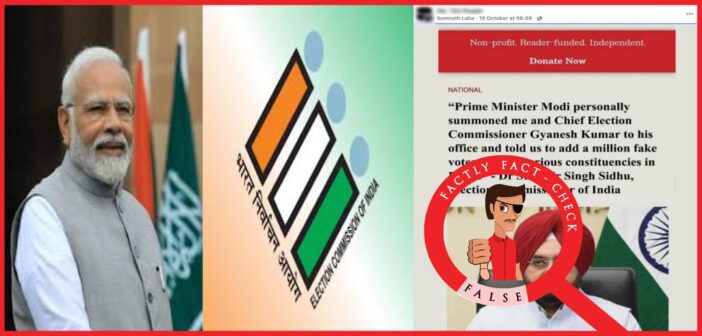 Amid this, a screenshot allegedly showing an article from the media outlet The Wire is circulating widely on social media (here, here, and here). The screenshot claims to feature a quotation from the Election Commissioner of India, named as Sukhbir Singh Sidhu, stating, “Prime Minister Narendra Modi summoned me and Chief Election Officer Gyanesh Kumar to his office and told us to add a million fake voters across various constituencies in Bihar.” Let’s verify the claim made in the post in this article.