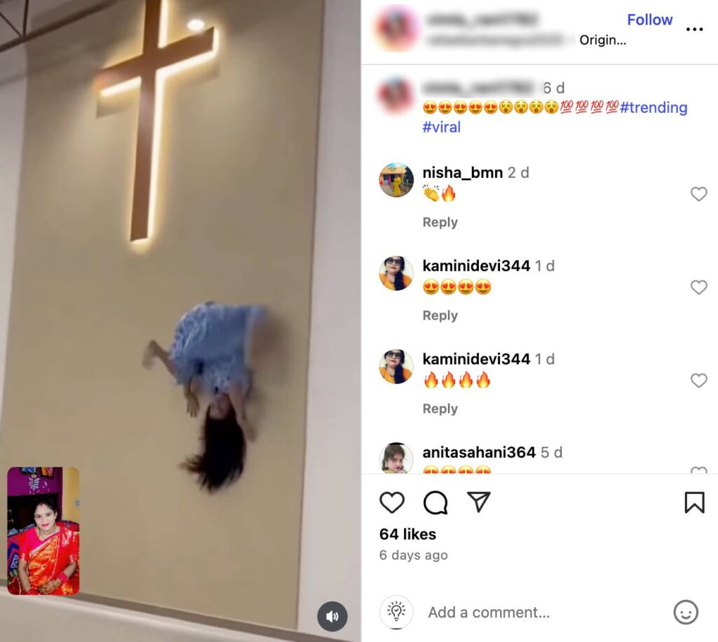 A video is going viral on social media (here, here, and here) platforms that shows a woman performing alleged paranormal activities, crawling upside down on a church wall while a person, who appears to be a pastor, commands her from the stage. The video is being shared with claims that it depicts a real incident. Let’s verify the truth behind the video in this article.