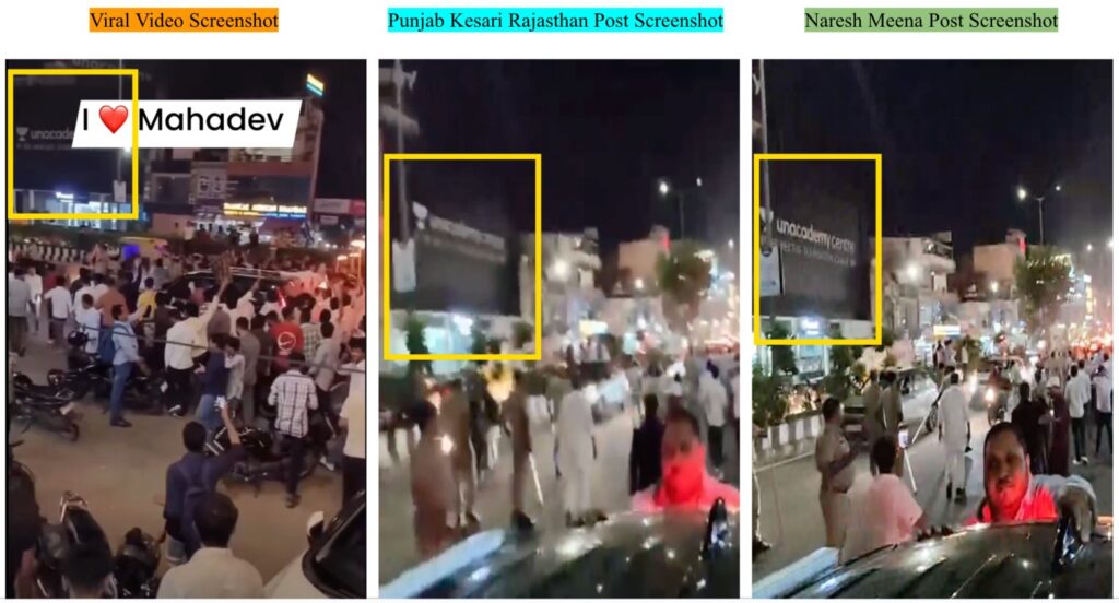 Using Google Street View, we matched the procession’s location to 11 Gopalpura bypass, Jaipur, Rajasthan, and identified Kamla Towers and the Unacademy centre beside it in the viral video, confirming that the footage is indeed from Jaipur.