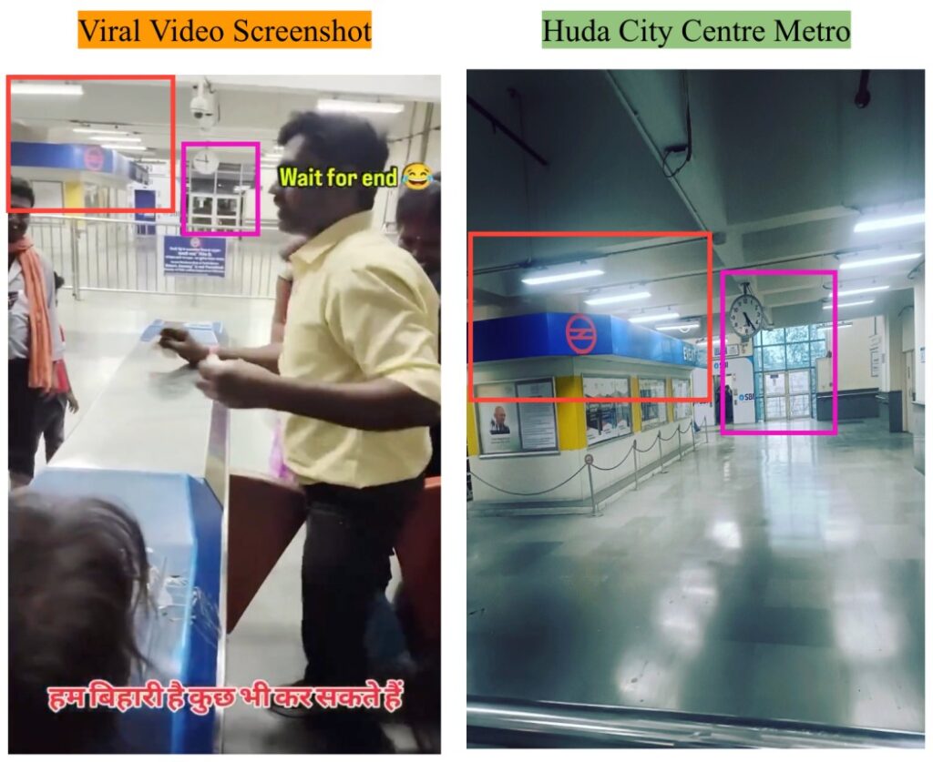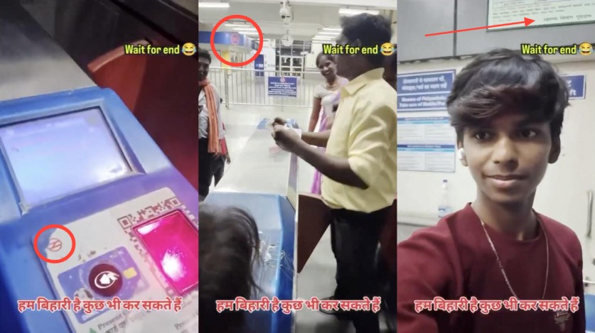 Fact: The viral video does not show people sneaking into Patna Metro without tickets. The visuals are from the HUDA City Centre metro station in Gurugram, part of the Delhi Metro Rail Corporation. The card-swiping machine logo, a board mentioning “Swasth Vibhag Gurugram,” and the signboard of the Oyster’s Water Park all indicate the location as Gurugram. Patna Metro Rail Corporation also confirmed on X on 13 October 2025 that the video is not from any Patna Metro station. Hence, the claim made in the post is FALSE.