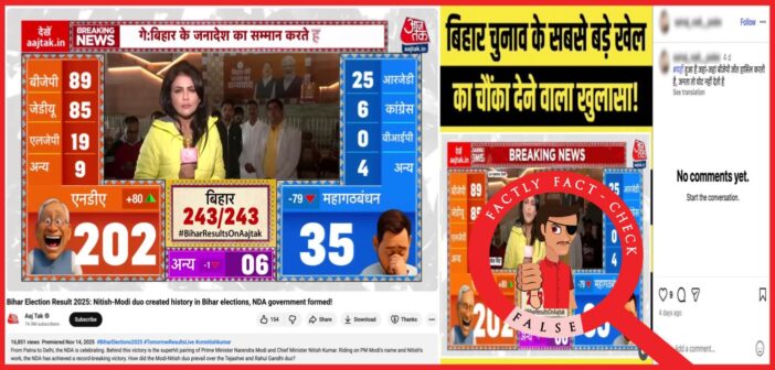 The National Democratic Alliance (NDA) secured a decisive victory in the 2025 Bihar Assembly Elections by securing 202 of the 243 seats. In this backdrop, a video claiming to show Aaj Tak anchor Sweta Singh discussing alleged irregularities in the election process is circulating on social media (here, here, and here).