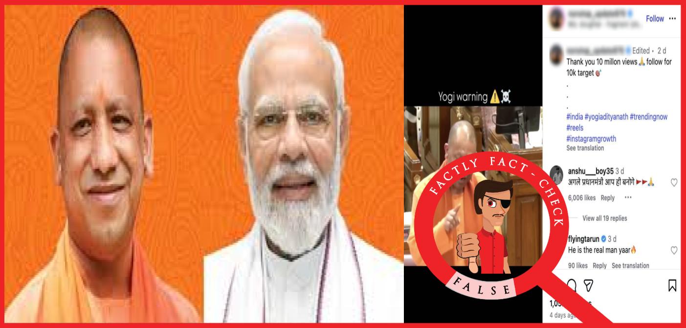 Claim: The video shows Uttar Pradesh Chief Minister Yogi Adityanath asking Prime Minister Narendra Modi to resign if he cannot attack Bangladesh.