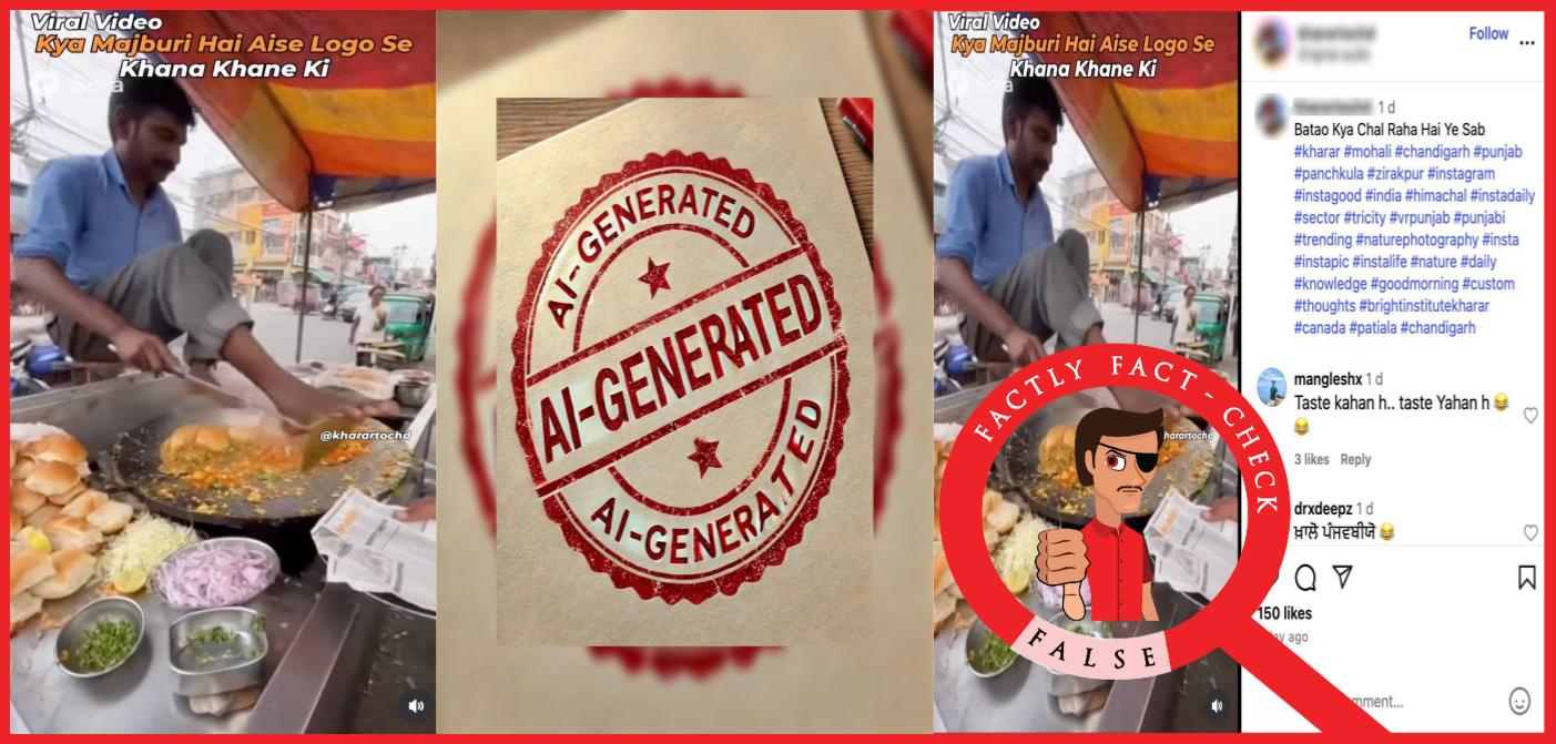 To sum up, this viral video showing a street vendor making pav bhaji with his feet in unhygienic conditions is AI-generated.