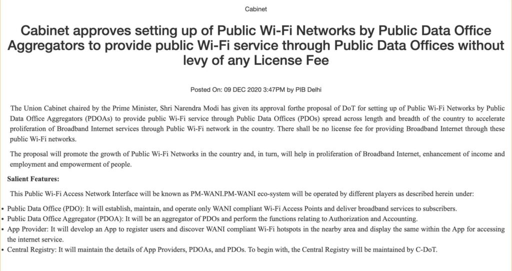 Claim: Government of India is offering free Wi-Fi to everyone under the PM-WANI scheme.