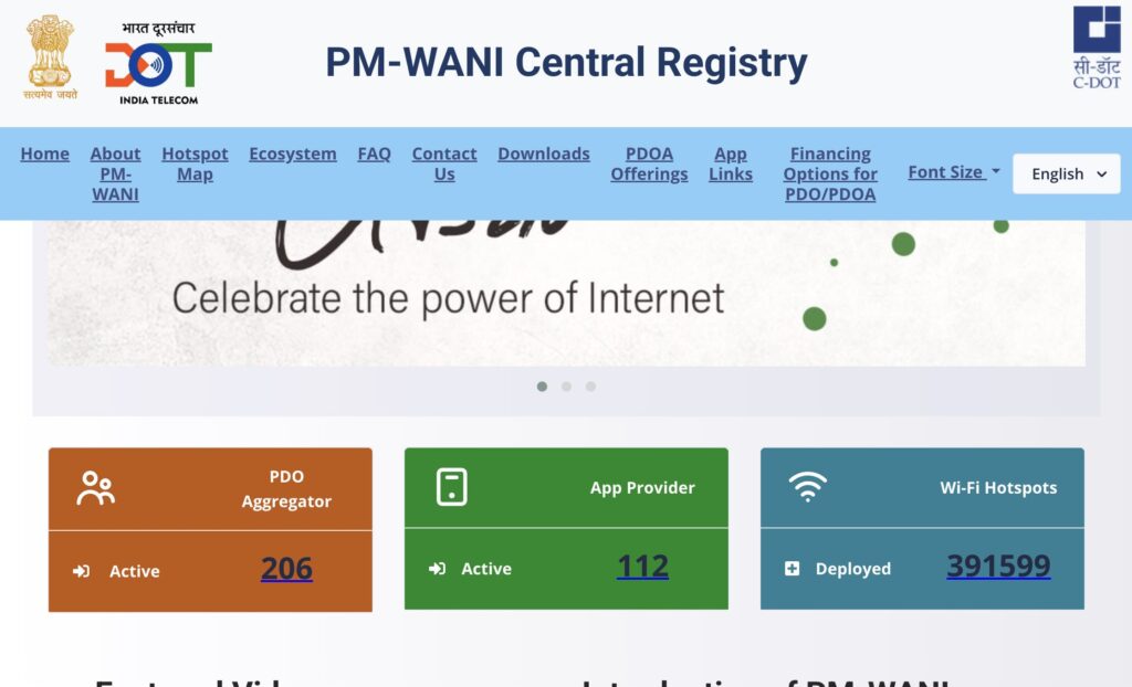 PDOs establish Wi-Fi hotspots and provide internet access to users. PDOAs offer authorisation and accounting services to PDOs. App Providers develop and manage mobile applications that display available Wi-Fi hotspots in the user’s vicinity. The Central Registry, maintained by the Centre for Development of Telematics (C-DoT), contains the records of all registered PDOs, PDOAs, and App Providers.