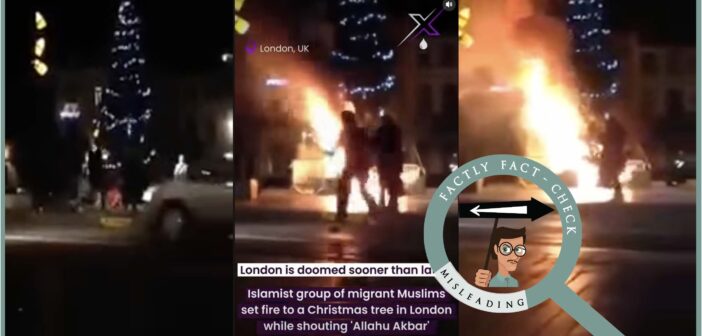 A video (here and here) going viral on social media claims to show a group of people setting fire to a giant Christmas tree while chanting “Allahu Akbar,” alleging that radical Muslims carried out the act in the UK in 2025. Let’s find the truth behind this claim.