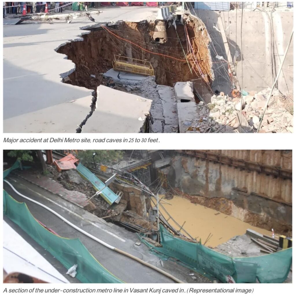 Additionally, a search for similar incidents in Delhi revealed that a section of the under-construction metro line near the Masoodpur Flyover in Vasant Kunj caved in August 2015, and another occurred in May 2023 at the Maidangarhi Metro site. However, the viral video has no connection to either of these incidents.