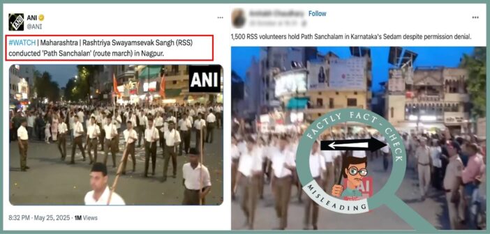 Fact: This viral video does not show the Rashtriya Swayamsevak Sangh (RSS) march held in Sedam, Karnataka. It actually shows an RSS rally held in Nagpur in May 2025. According to reports, the RSS did carry out a march in Sedam, Kalaburagi district, Karnataka, on 19 October 2025, despite the government denying permission and imposing police restrictions. Hence, the claim made in the post is MISLEADING.