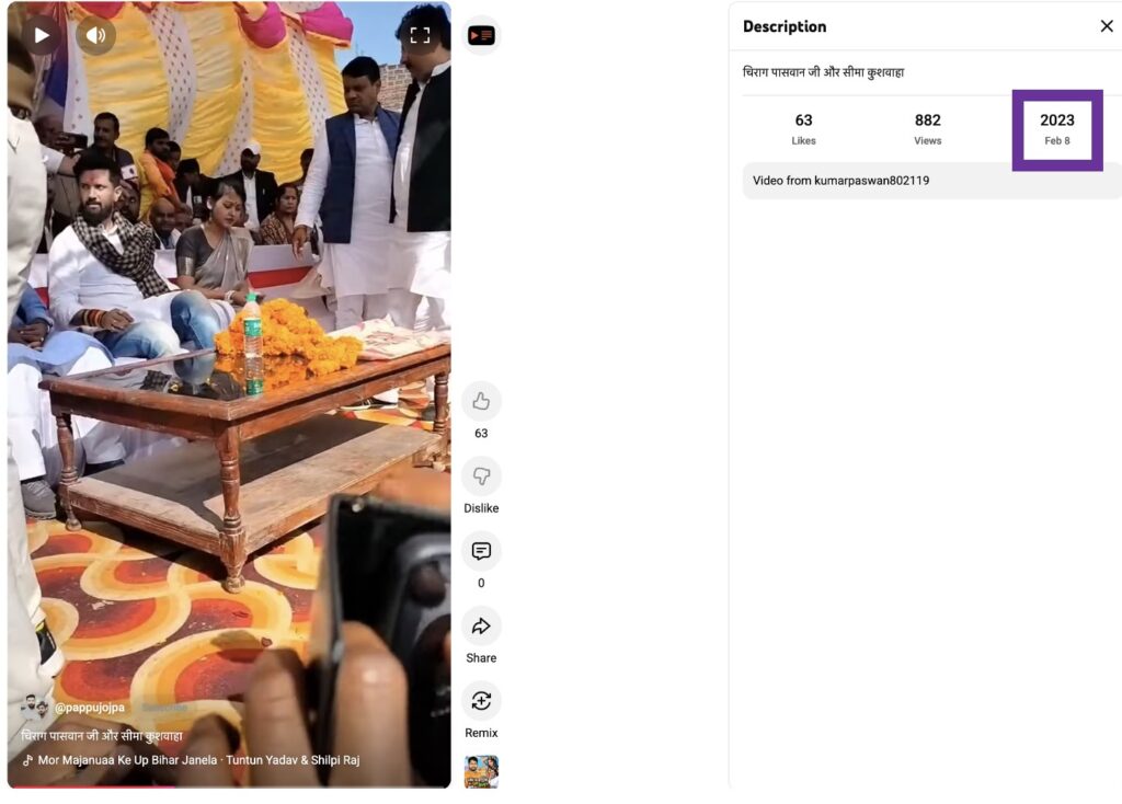 To find the truth, we conducted a reverse image search on Google, which led us to the same video uploaded on YouTube on 08 February 2023, with the caption “Chirag Paswan and Seema Kushwaha.” This indicates that the video is old and not related to the upcoming Bihar elections.