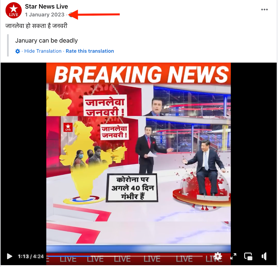 However, a reverse image search of the viral clip led us to an earlier upload (archive) of the same video on 01 January 2023, shared on the Facebook page ‘Star News Live’. This video discusses warnings about the fourth wave of COVID-19, predicting that it would hit India in January 2023, with the next 35-40 days being potentially deadly.